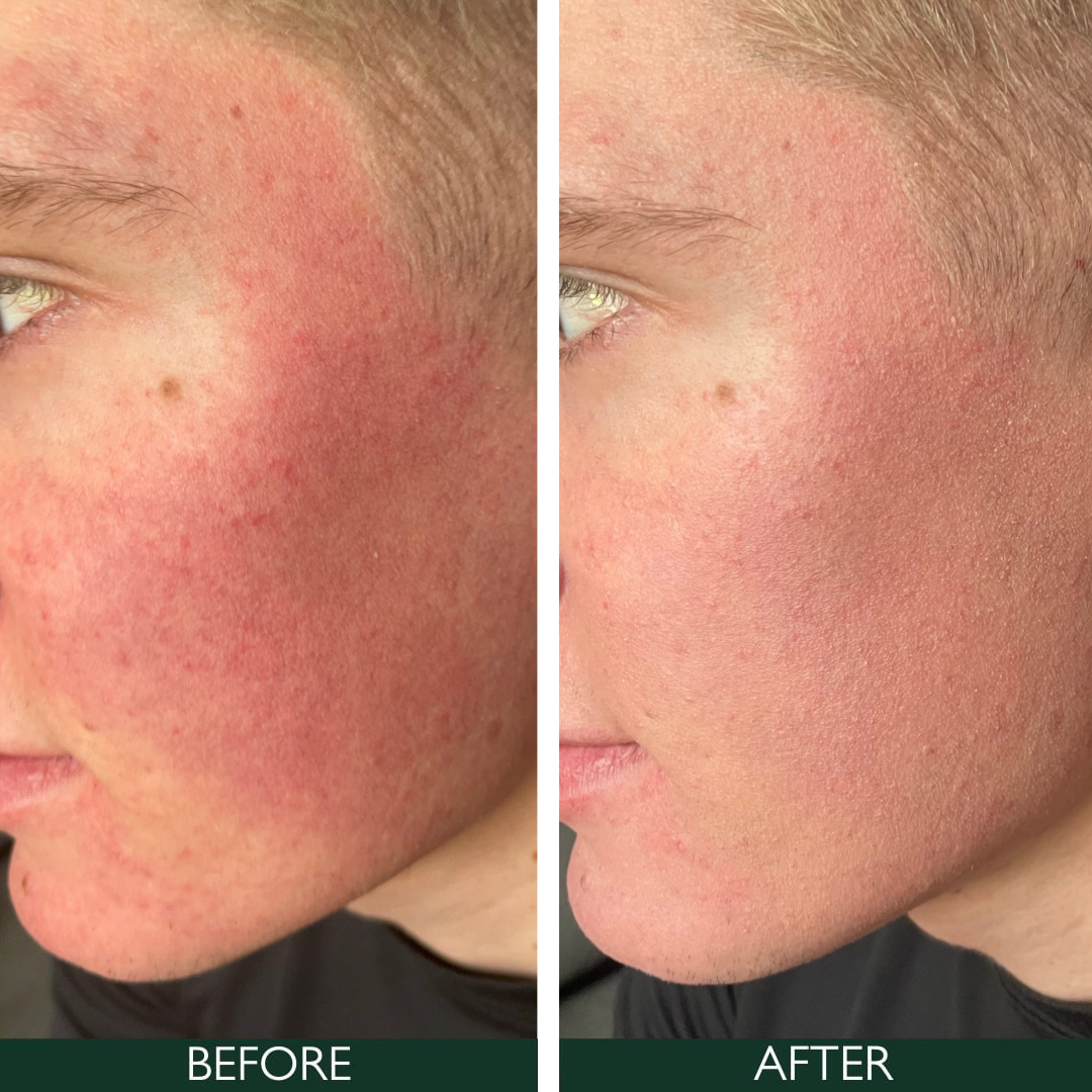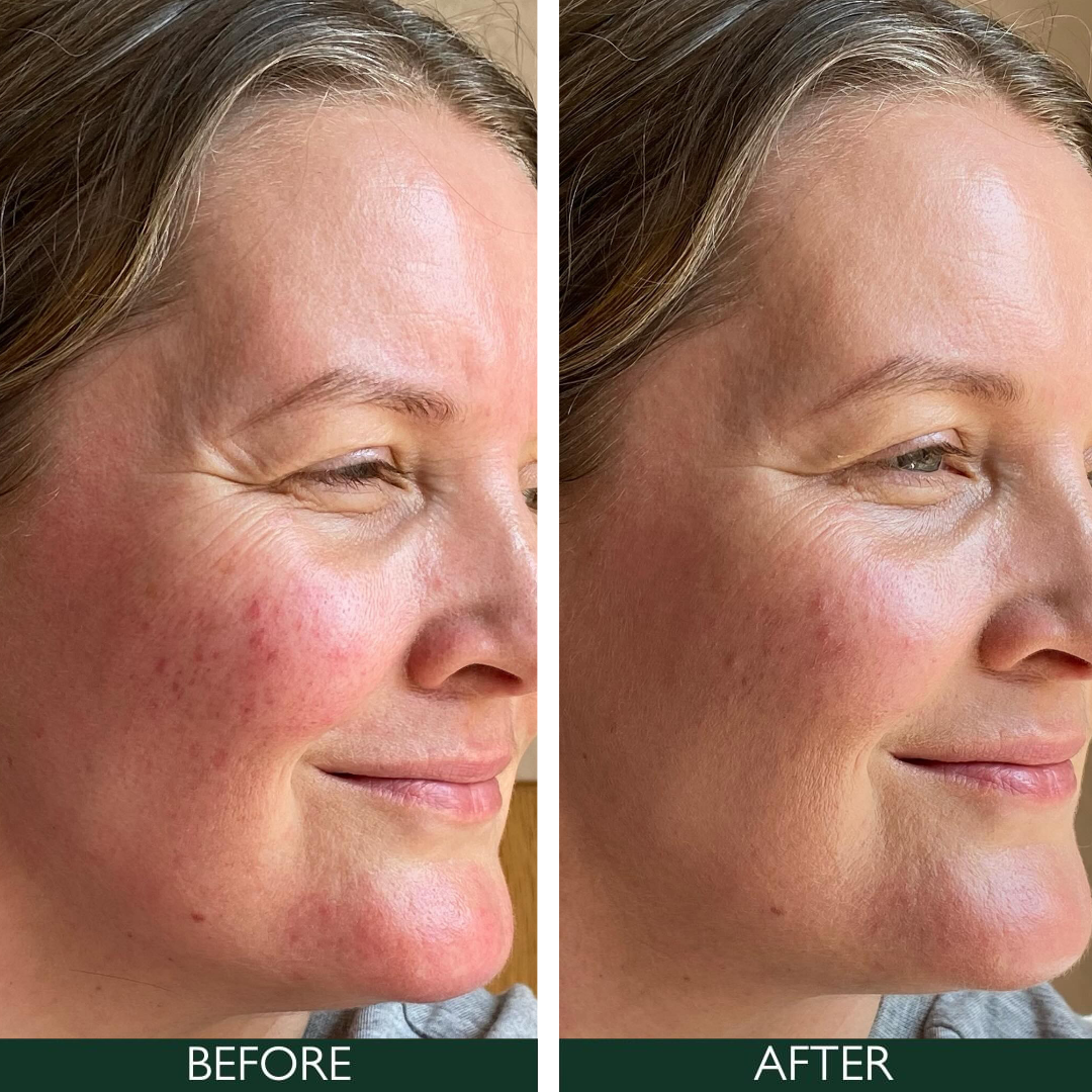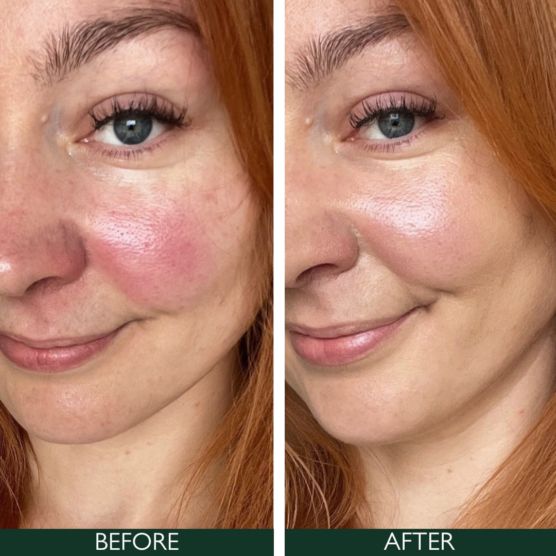 Rosacea, couperose, acne, blemishes, flushing, sensitive and irritated skin, natural red complexion, uneven skin tone, spider veins (broken capillaries) and even sunburn.